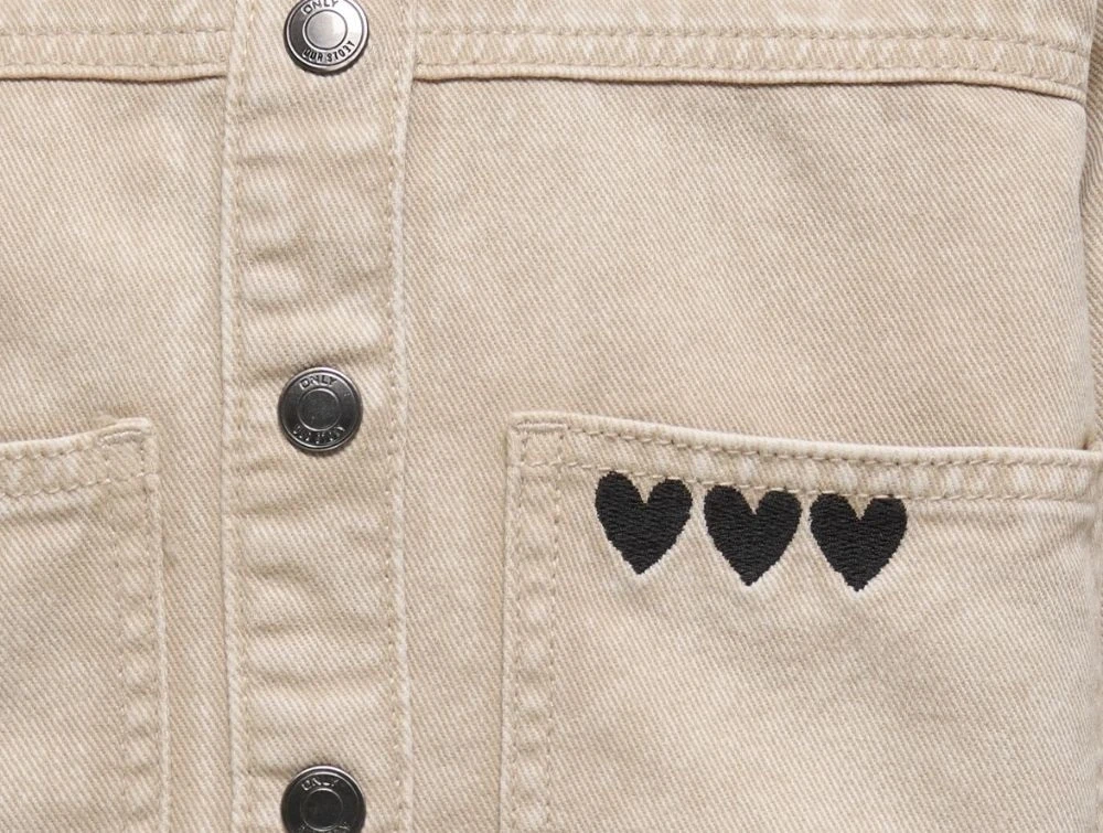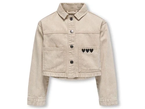 Beige twilljakke fra Kids ONLY med vasket look og broderidetaljer.