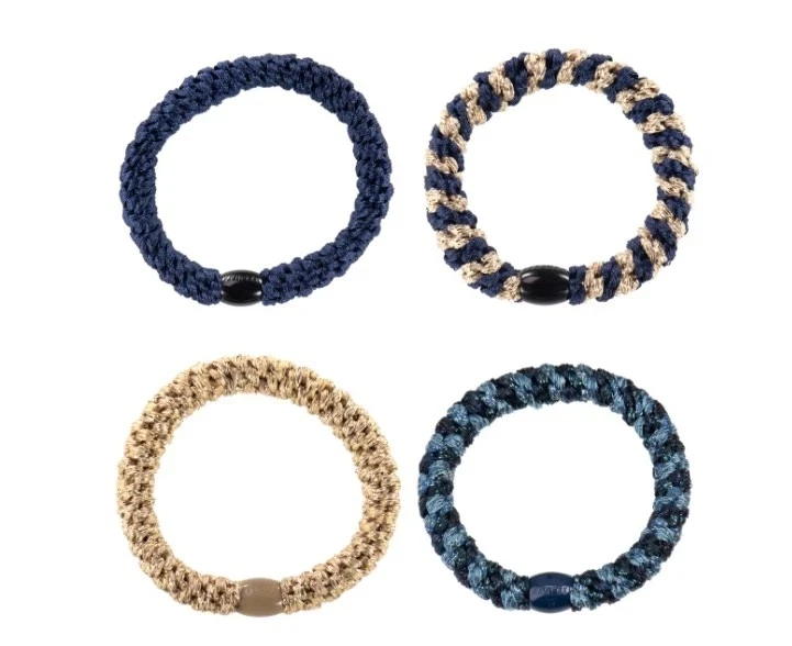 4 hårelastikker i mørkeblå, lyseblå og guld fra Kknekki.