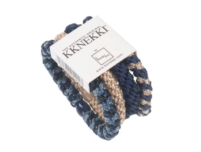 Mere information om Kknekki hårelastikker dark blue gold mix (4-pak)