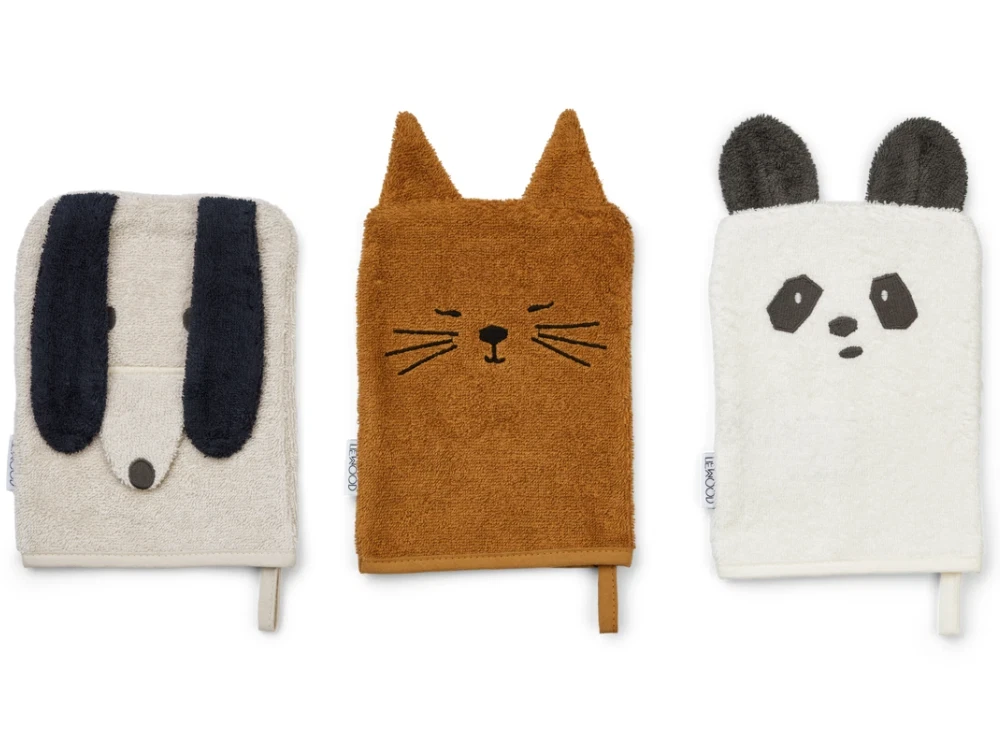 3 børnevaskeklude i økologisk bomuld fra Liewood.
