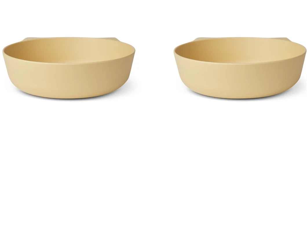 To fine skåle i farven jojoba med kanindetaljer fra Liewood.
