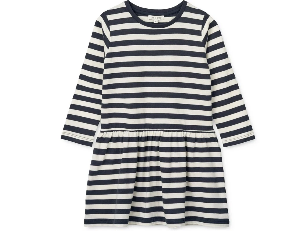 Stribet kjole i farverne classic navy og creme de la creme fra Liewood.
