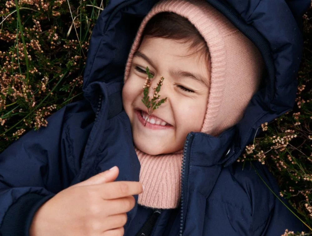 Jakken har en aftagelig hætte med trykknapper, søde dyredetaljer som små ører. Den bløde ribkant ved ærmerne sikrer ekstra komfort, mens fyldet, bestående af 70% dun og 30% fjer, sørger for optimal varme.