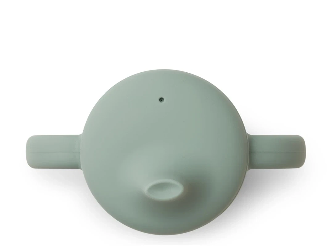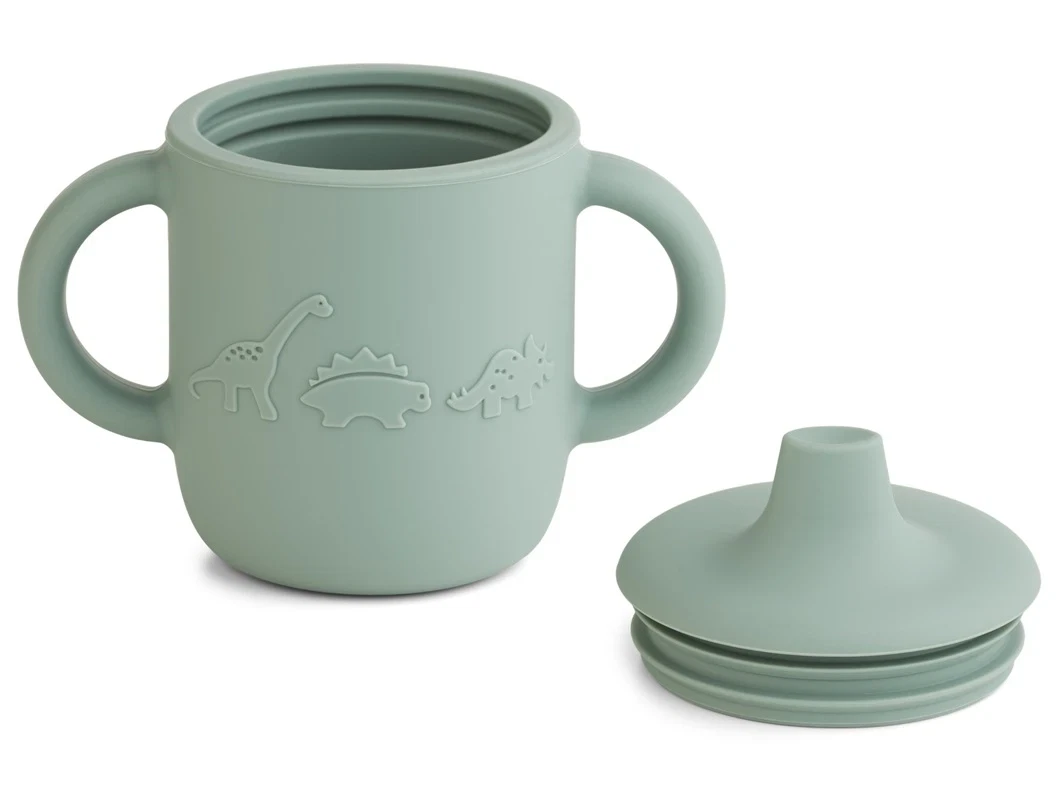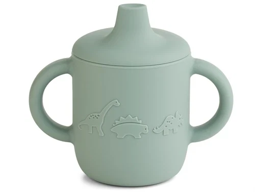 Tudekop i silikone i farven peppermint med dinodetaljer fra Liewood.