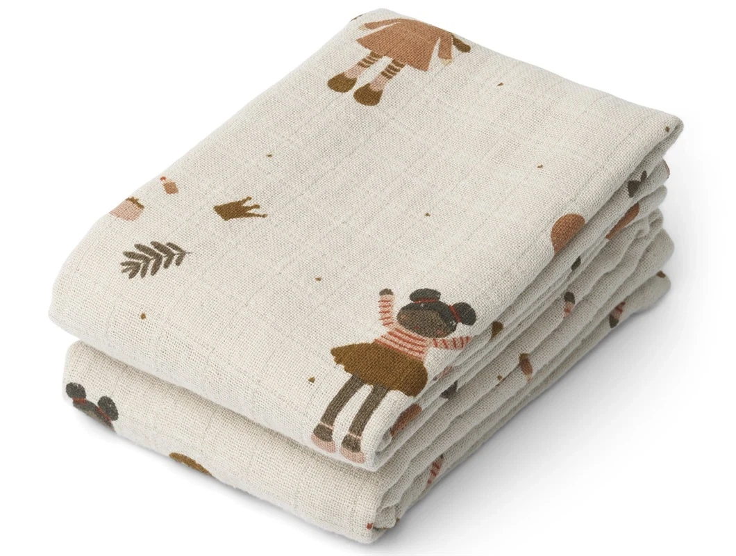 2 stofbleer i økologisk bomuld med print i farven doll/sandy mix fra Liewood.