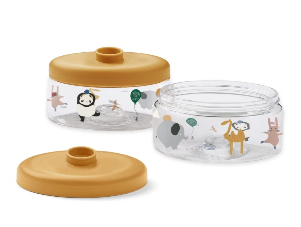 Praktiske madopbevaringsbokse i klar Tritan med Around the World-print fra Liewood. Dominique-boksene er ideelle til opbevaring af babymad, snacks eller mindre portioner i hverdagen.