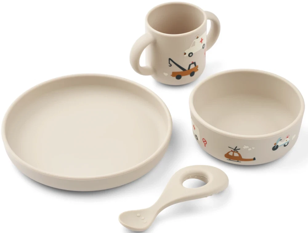 Liewood emergency vehicle/sandy spisesæt Vivi silikone (4-pak)