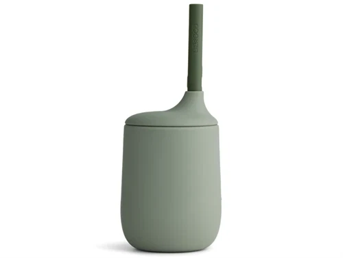 Liewood faune green hunter green mix børnekop med sugerør Ellis silikone