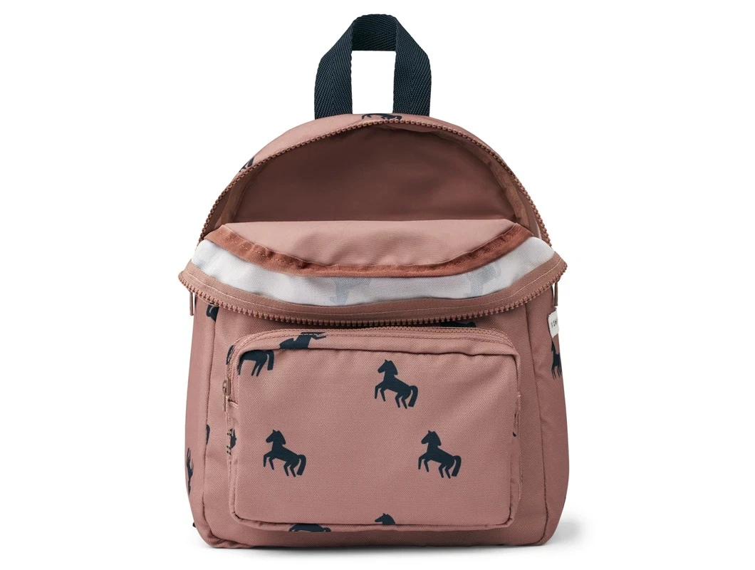 Rygsæk med justerbare skulderemme i farven dark rosetta med hesteprint fra Liewood.