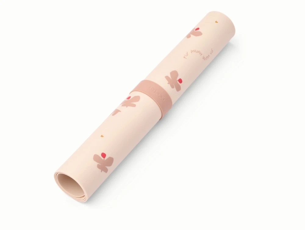 Liewood Jude dækkeserviet i apple blossom med butterfly printLiewood Jude dækkeserviet i silikone rullet sammen