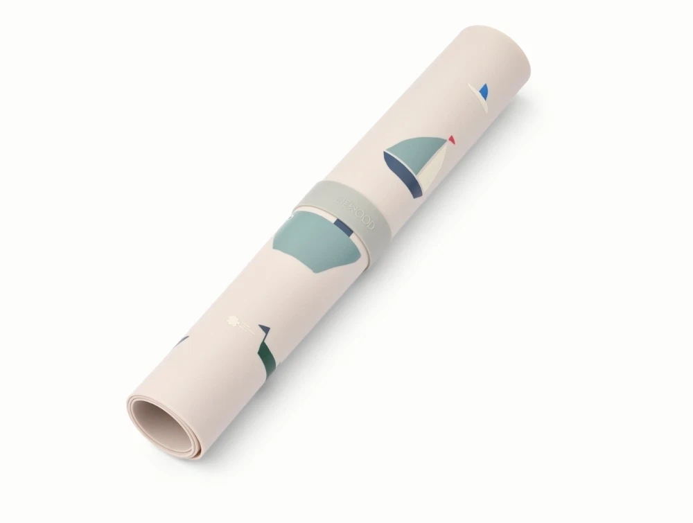 Liewood Jude dækkeserviet i sandy med sailing printLiewood Jude dækkeserviet i silikone rullet sammen