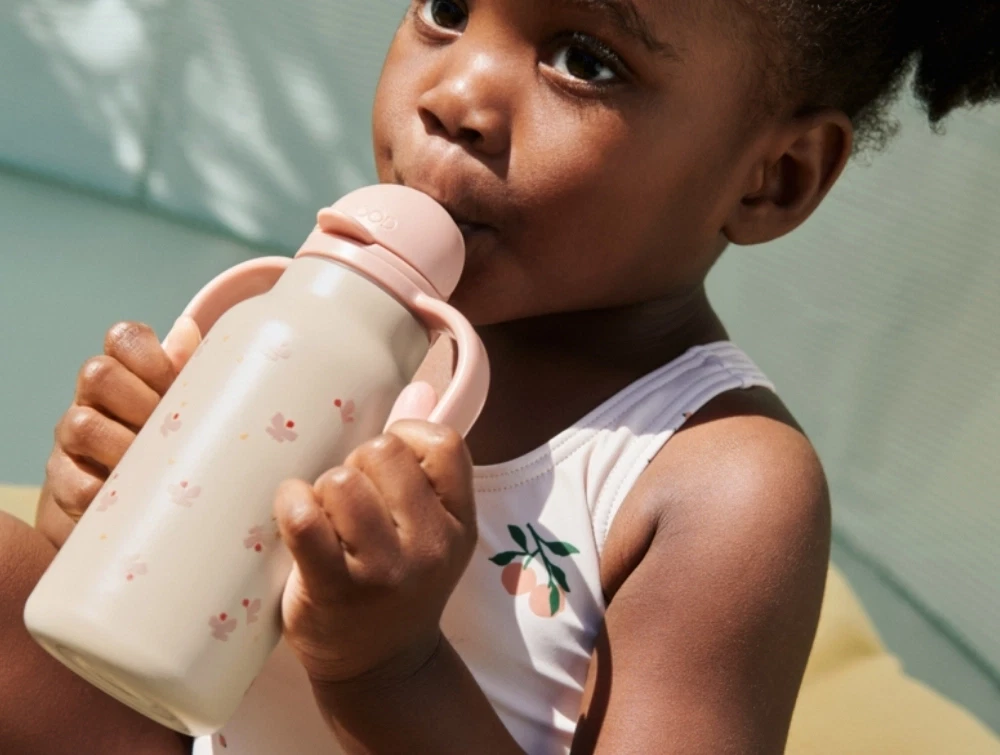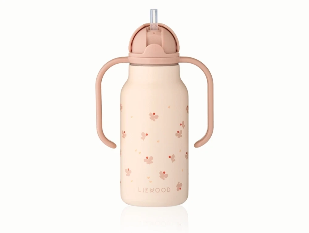 barn drikker af Liewood Kimmie drikkedunk i apple blossom med mini butterfly print 250 mlLiewood Kimmie drikkedunk med to haandtagLiewood Kimmie drikkedunk med sugeroerLiewood Kimmie drikkedunk detalje af laeg og haandtag