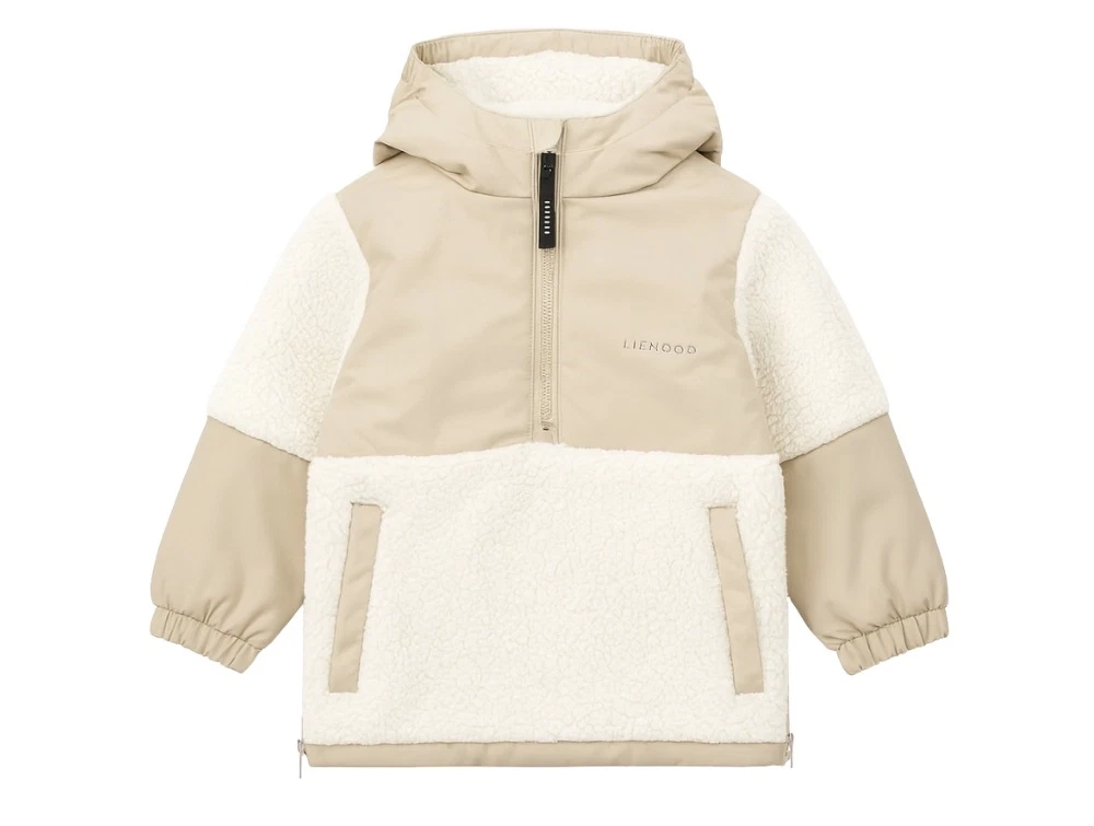 Liewood's Brucie anorak er en stilfuld og bæredygtig overgangsjakke med teddy-detaljer. Anorakken er OEKO-TEX®-certificeret og behandlet med Bionic Finish Eco for at beskytte både dit barn og miljøet. Den er designet med Thermolite-teknologi for effektiv varmeregulering og er fremstillet med genanvendt nylon for ekstra bæredygtighed.