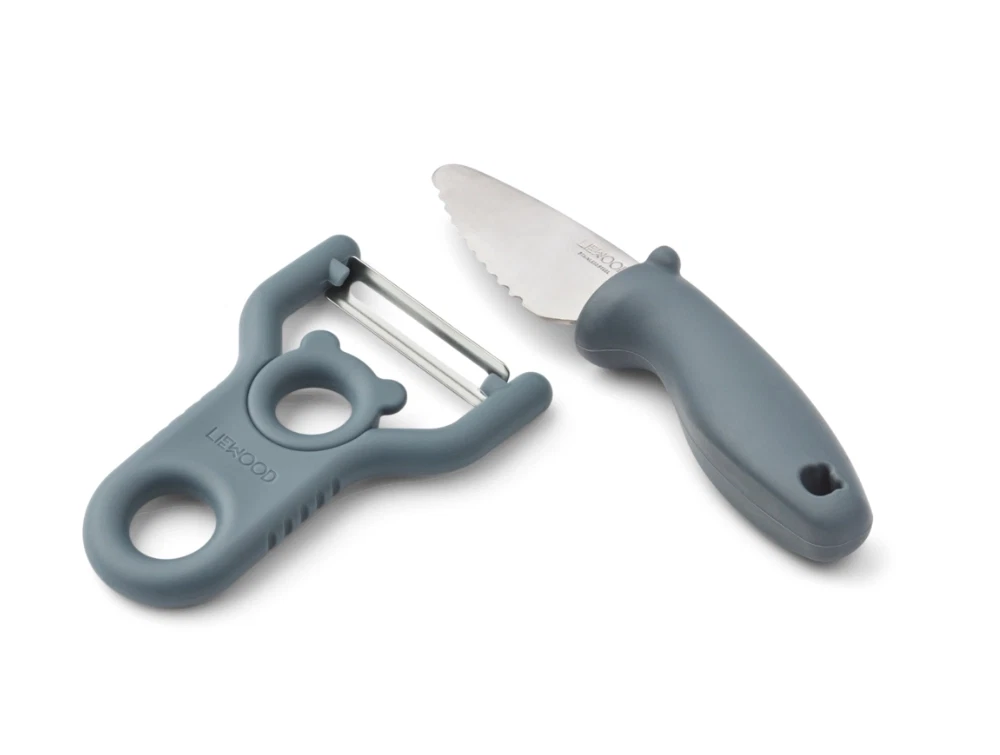 Liewood køkkensæt i blå nuance med skræller og kniv