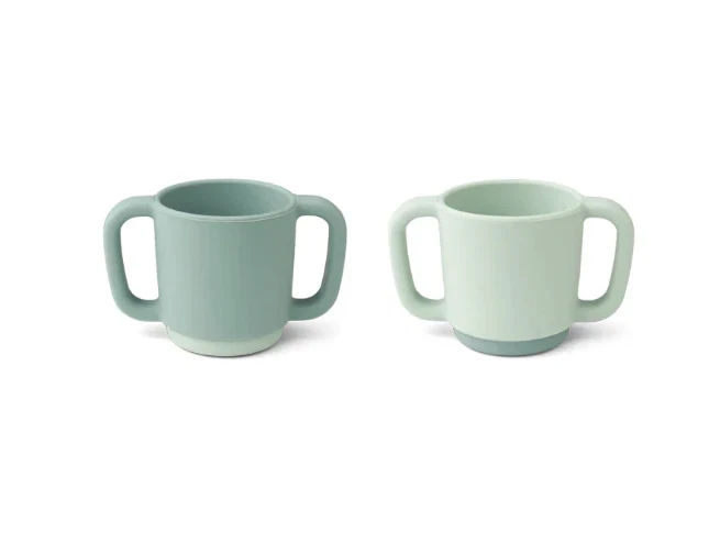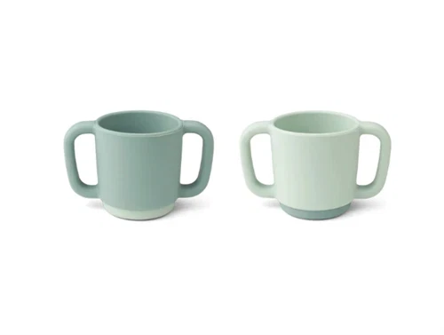 2 brudsikre kopper med håndtag til baby i farven peppermint mix fra Liewood.