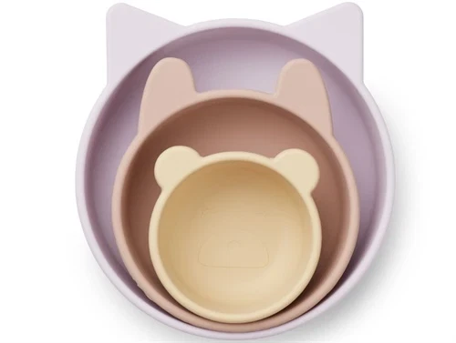 Sæt med tre skåle i forskellige størrelser med dyreformede ører i farven light lavender multi mix fra Liewood.