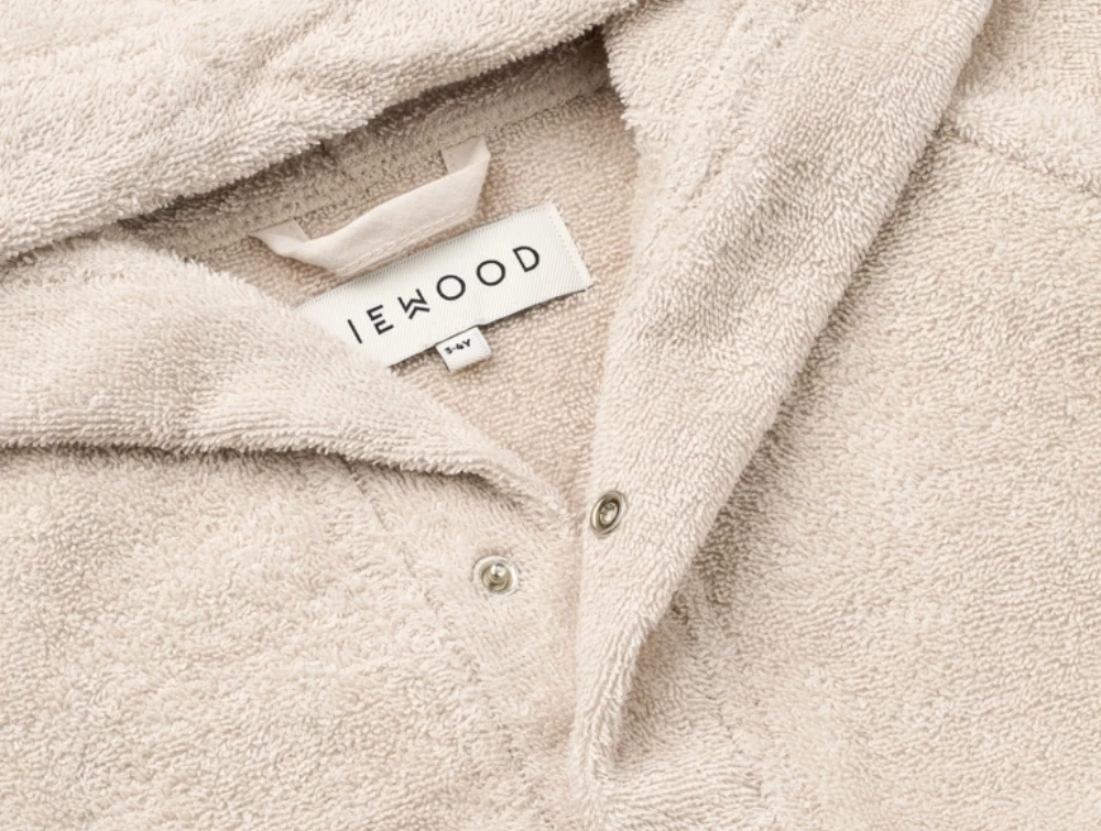 Lily badekåben er fremstillet af økologisk bomuld i en tæt frottékvalitet, der føles behagelig mod huden og hjælper med at holde barnet varmt.