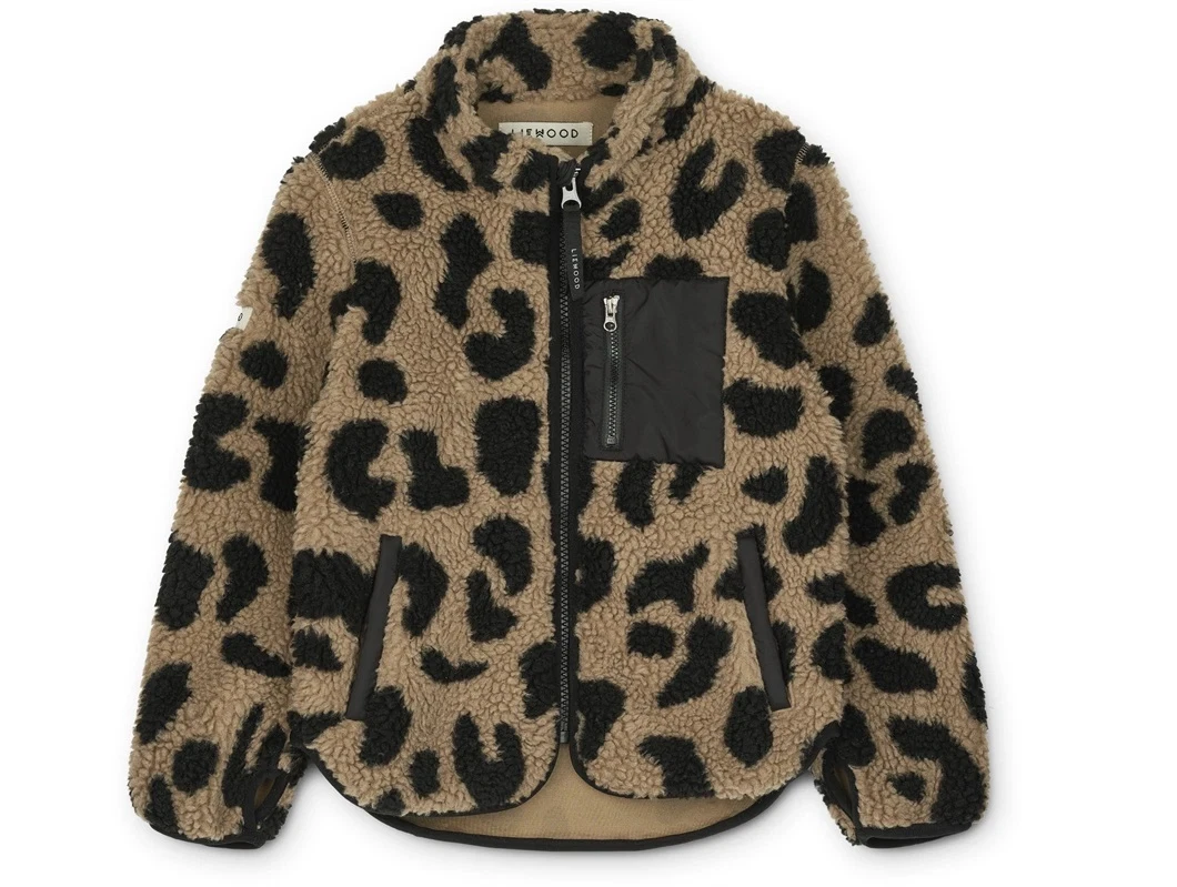 Liewood fleecejakke i mega leo og oat mix med praktiske detaljer