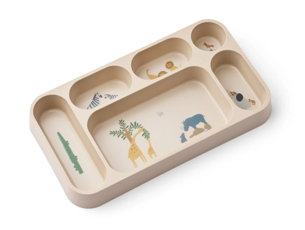 Liewood Mosu opdelt tallerken beige med seks rum og dyreprint