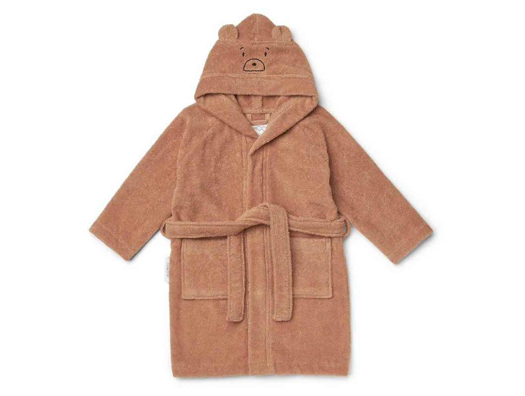 Badekåbe i økologisk bomuld i farven tuscany rose med søde bjørnedetaljer fra Liewood.