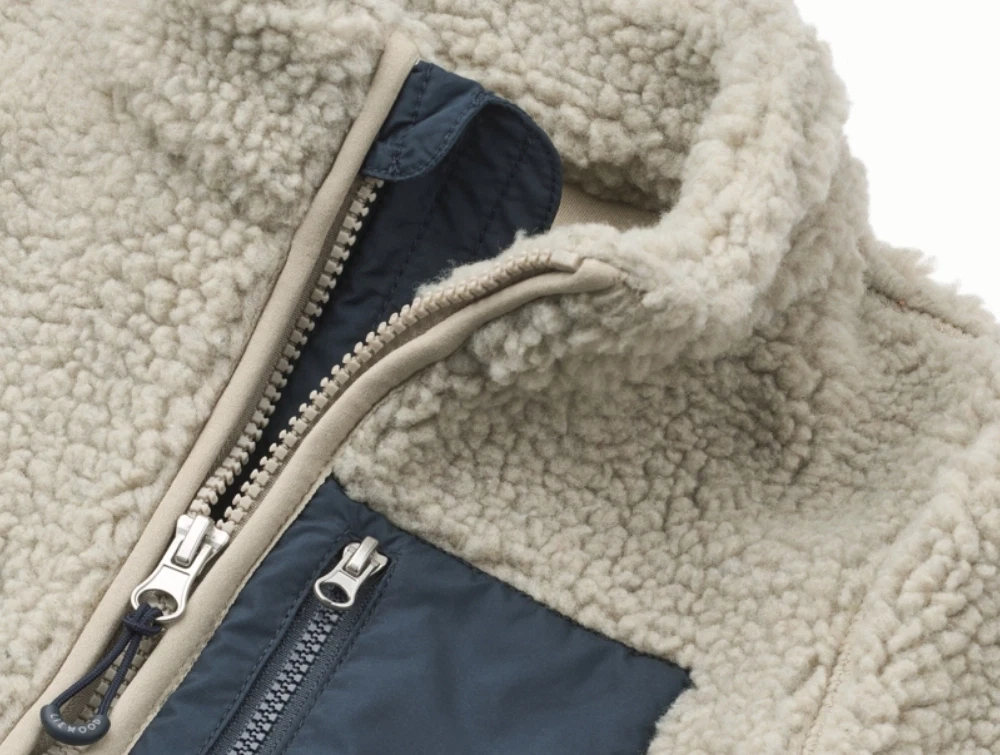• Gennemgående lynlås og høj krave