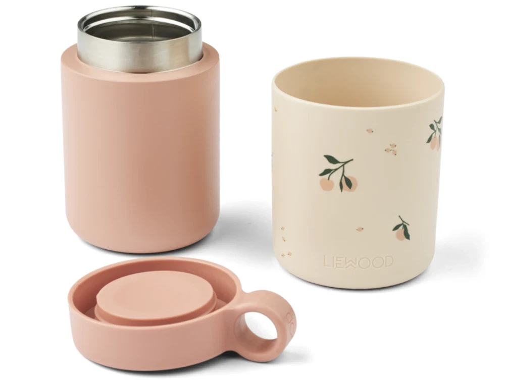 Termobeholder til fødevarer i farven sea shell med ferskenprint fra Liewood.