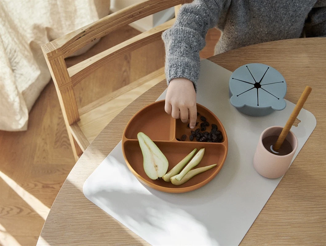 Materialesammensætningen er 100% silikone, hvilket betyder, at de er fri for skadelig kemi som phthalater. De opfylder strenge standarder for fødevaresikkerhed, da de er blevet LFGB-testet og testet efter de seneste EU-regler 1935/2004*. Harvey tallerkenerne er designet til at være bløde og modstandsdygtige, hvilket betyder, at de ikke går i stykker, hvis de skulle tabes. Dette gør dem perfekte til børn i alle aldre.