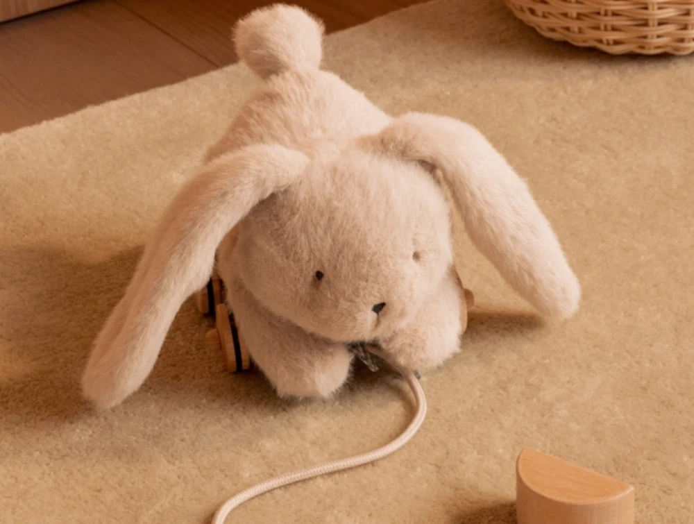 Det søde trækdyr er lavet til små børn, som kan gå og trække legetøjet efter sig. Den bløde overflade og det enkle udtryk gør det til en kær favorit i legekassen.