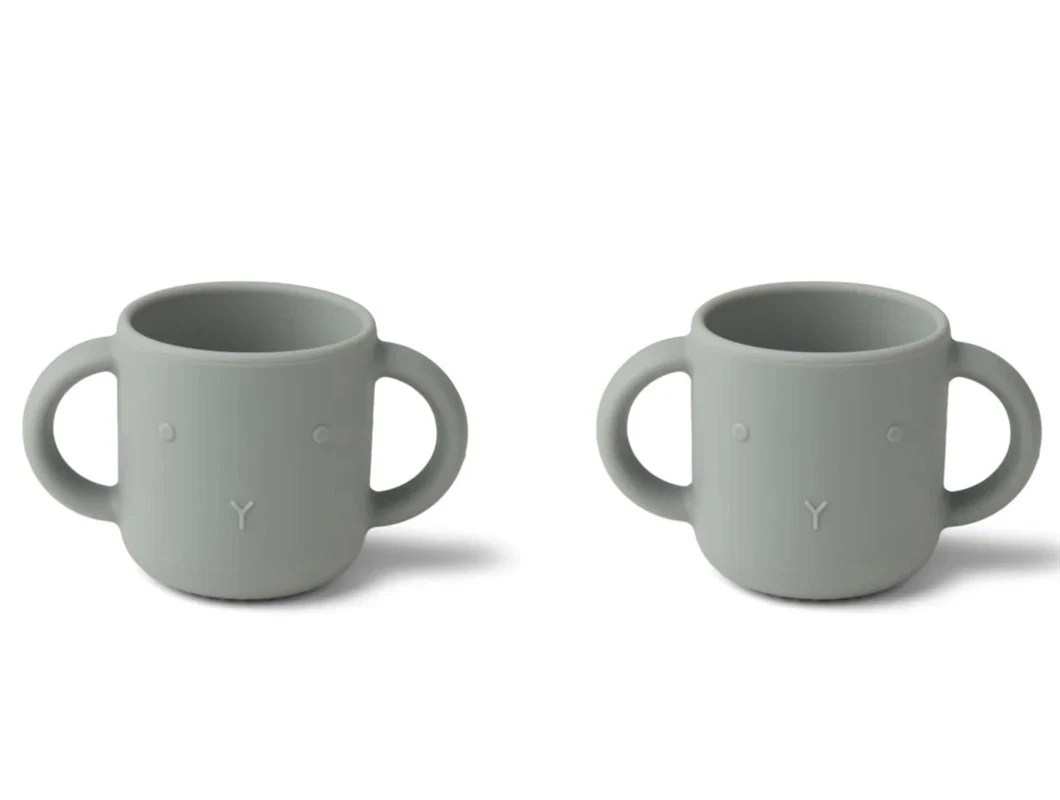 2 babykopper med hank i silikone i farven dove blue med kanindetaljer fra Liewood.