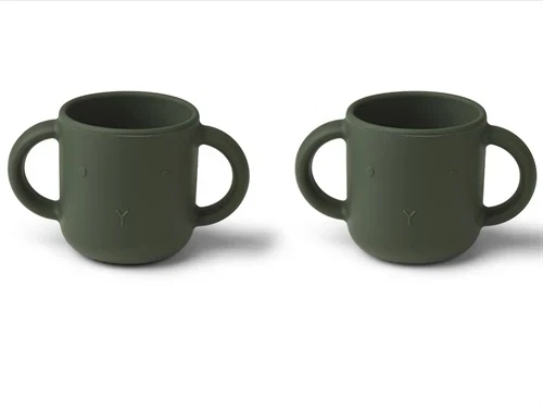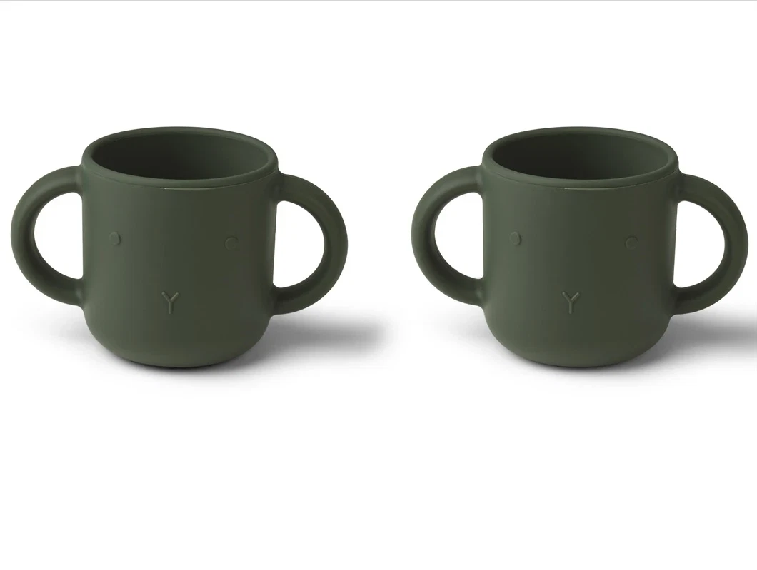 2 babykopper med hank i silikone i farven hunter green med kanindetaljer fra Liewood.