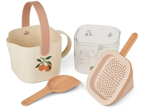 Liewood Roald sandsæt i farven sea shell med ferskenprint (5-pack).