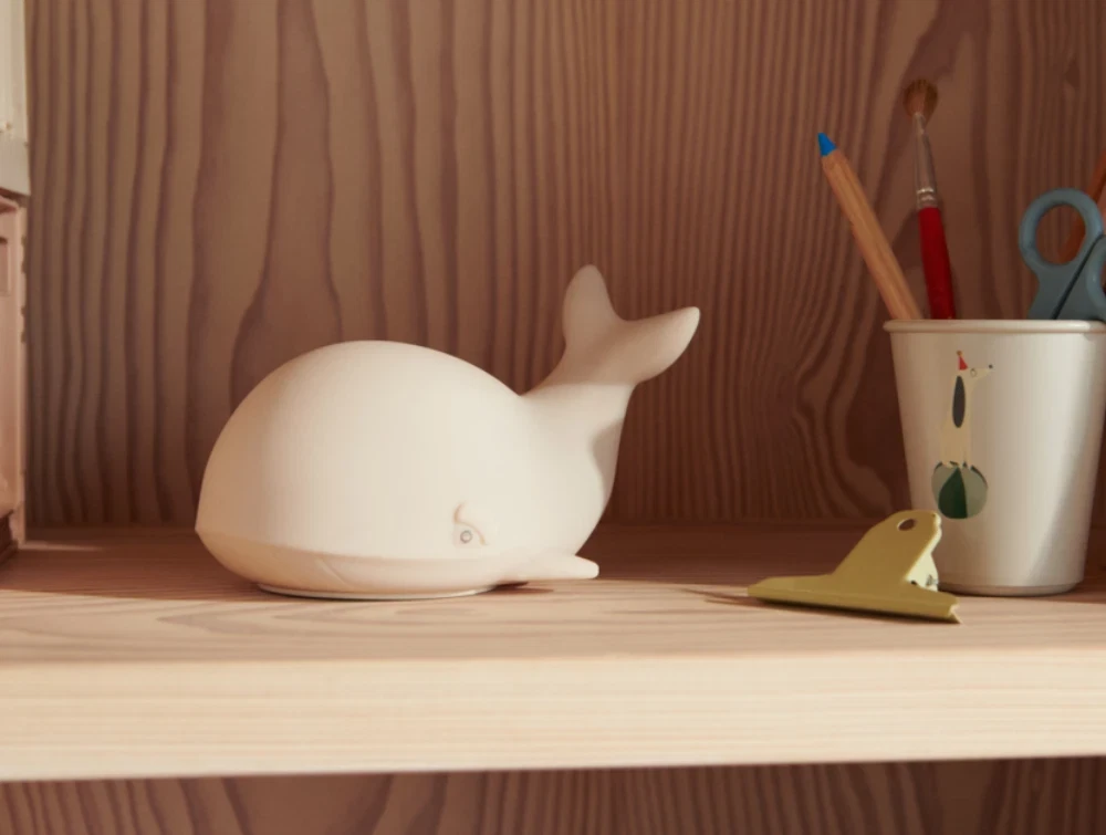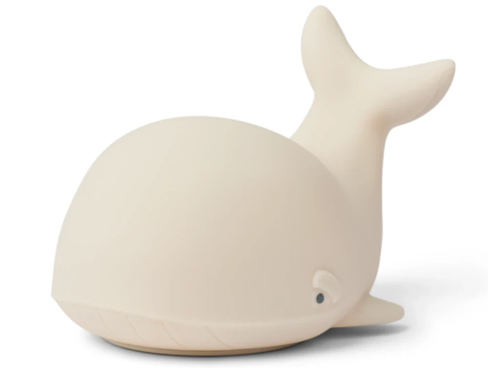 Skøn natlampe formet som en hval i farven sandy fra Liewood.