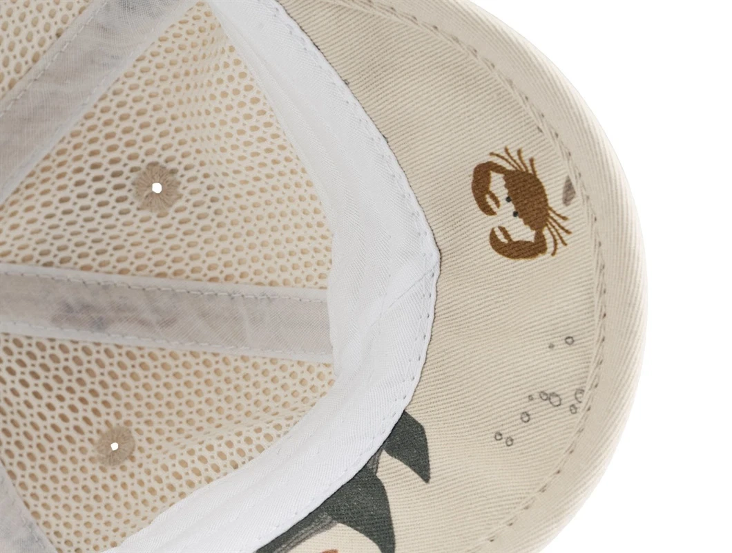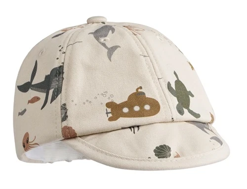 Kasket i bomuld til baby i farven sandy. med skønt print fra Liewood.