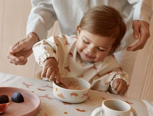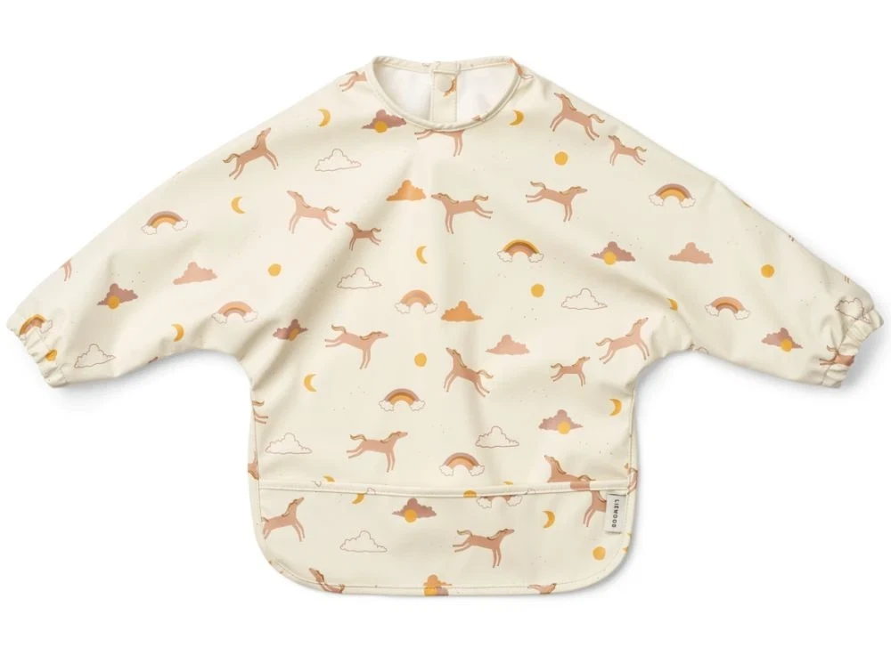 Let og praktisk spiseforklæde fra Liewood med lange ærmer, perfekt til små børn, der udforsker madens verden. De elastiske ærmekanter sikrer en tæt pasform, mens den praktiske opsamlingslomme fanger spildt mad og minimerer rod.