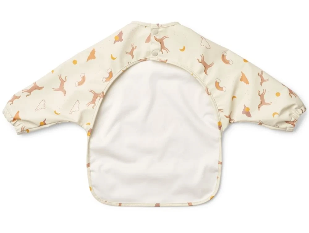 Hagesmæk med lange ærmer i farven ecru med skønt print fra Liewood.