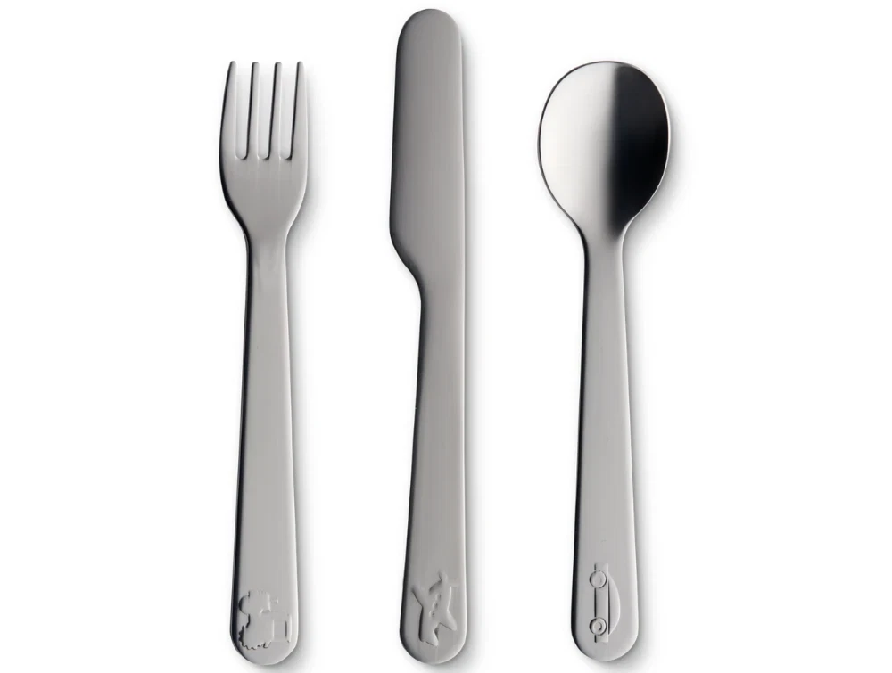 Bestiksæt med én gaffel, kniv og ske i ren stål fra Liewood.
