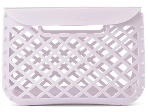 Den perforerede kurv er en praktisk og stilfuld løsning til småting på farten. Den har et enkelt spænde, der gør den nem at åbne og lukke, og kan bruges som clutch til barnet eller som ekstra opbevaring i en større taske.