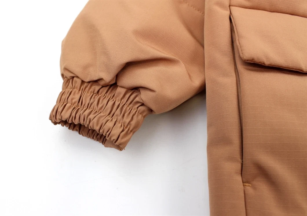 Jakken lukkes med lynlås, velcro og har to lommer.