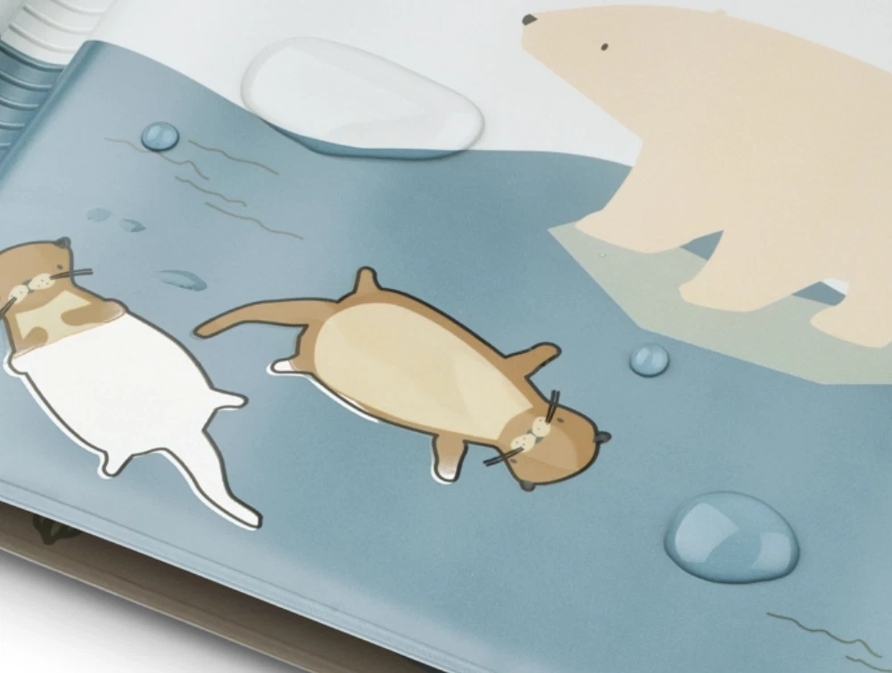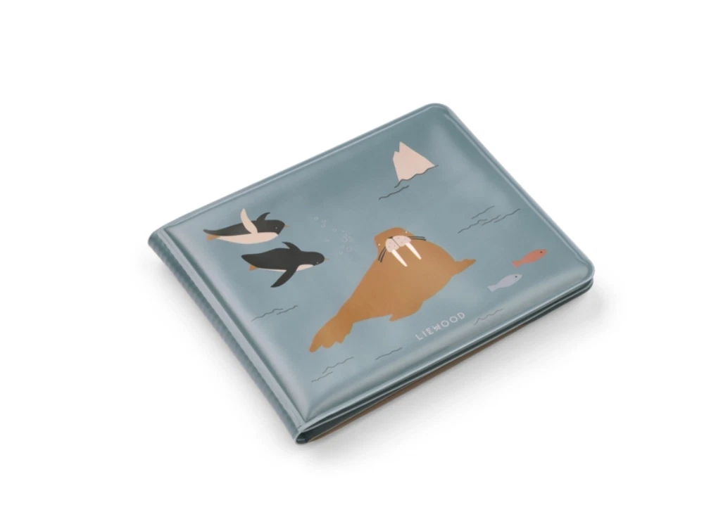 Vandbog i blå nuance fra Liewood med havdyr og arktiske motiver. Waylon vandbog skifter farve, når siderne bliver våde, og giver barnet en rolig og sanselig legeoplevelse uden brug af tuscher eller maling.