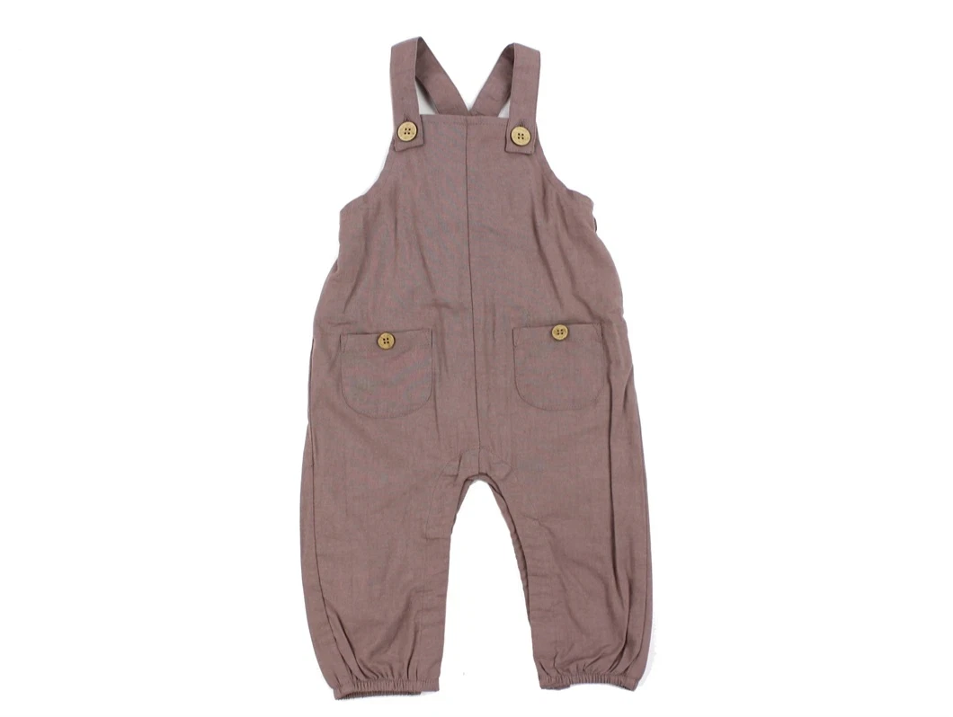 Fine løse smækbukser til baby i farven antler med knaplukning og elastik i bukseben fra Lil' Atelier.