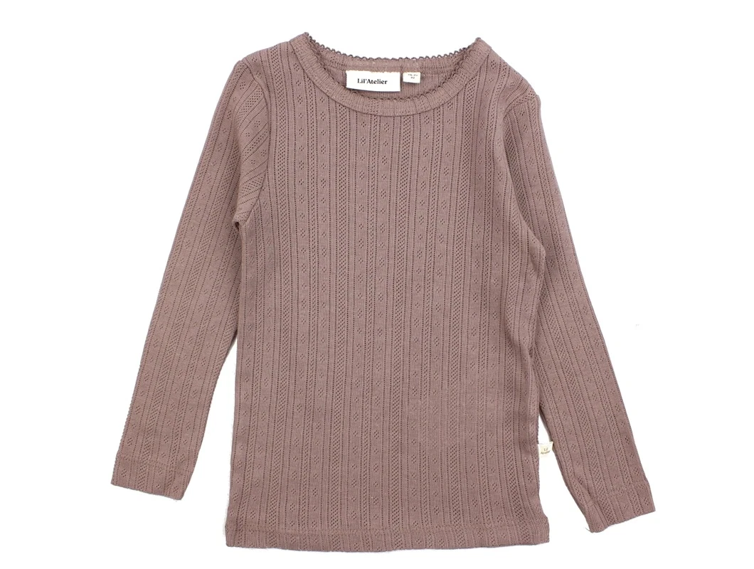Langærmet top i farven antler med hulmønster fra Lil' Atelier.
