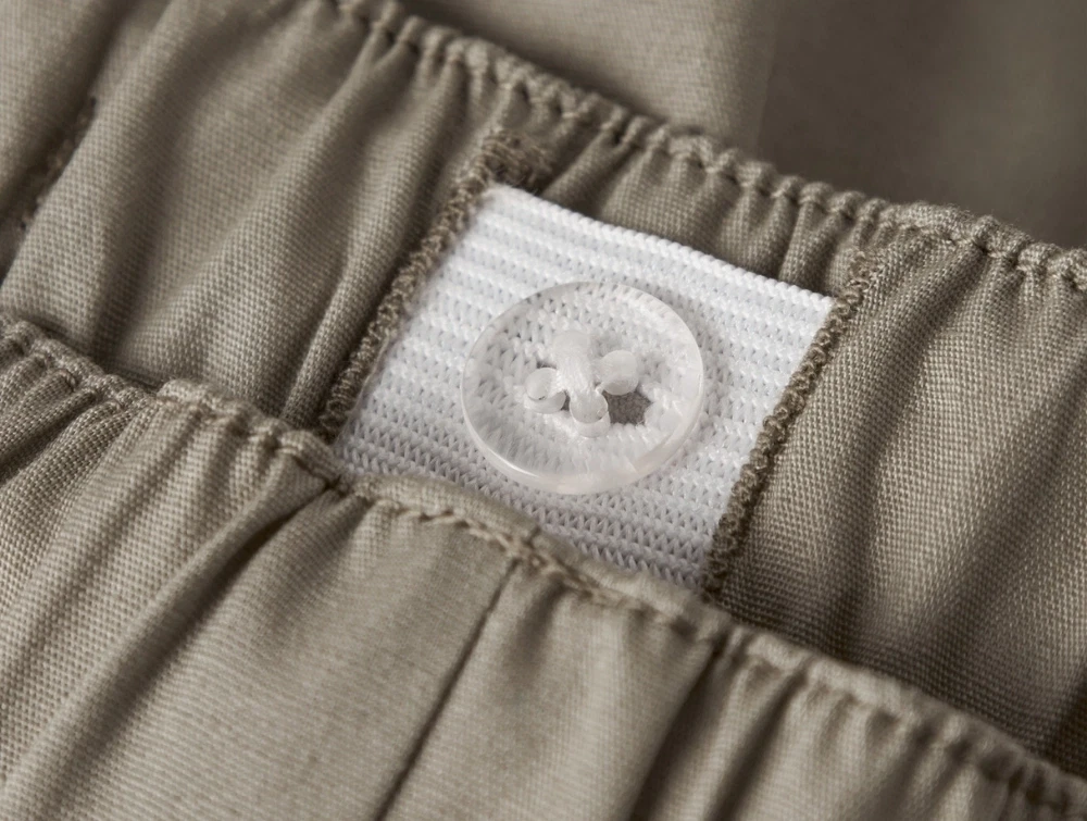 Modellen har elastik i taljen med snøre samt praktiske lommer i siderne.