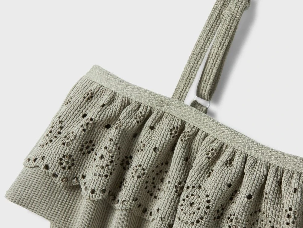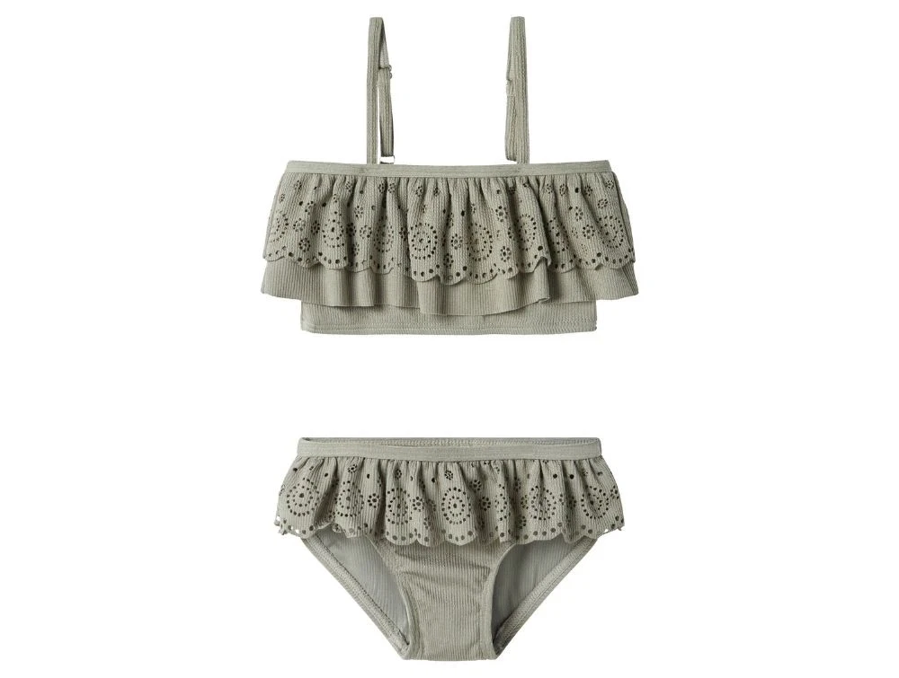 Støvet grøn blondebikini fra Lil Atelier 13239469 forest fogBlondebikini i grøn fra Lil Atelier 13239469 forest fogBlondebikini i grøn fra Lil Atelier bagfra 13239469 forest fogBlondeflæse på bikini i støvet grøn fra Lil Atelier 13239469 forest fogPige klædt i støvet grøn bikini med blondeflæser fra Lil Atelier 13239469 forest fog