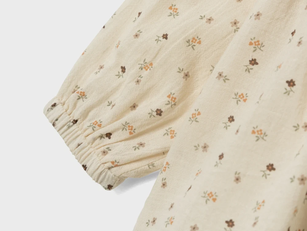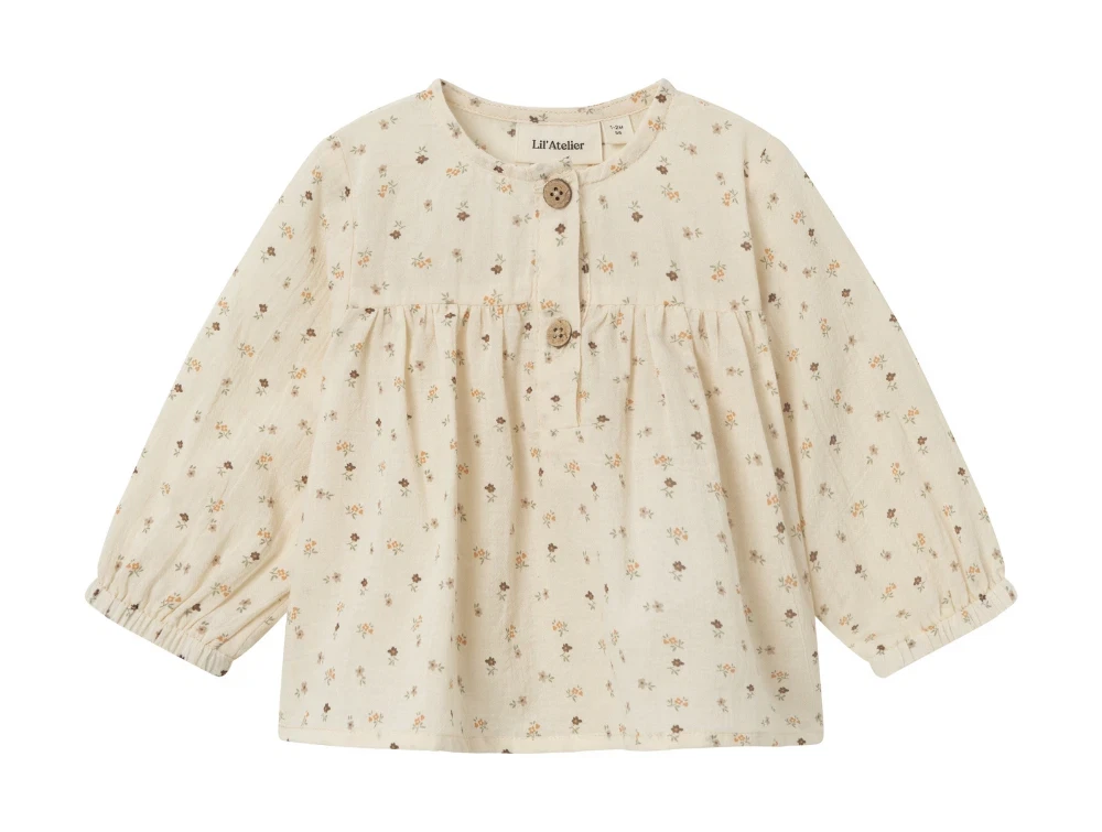 Skjortetop i farven birch med blomsterprint fra Lil' Atelier.