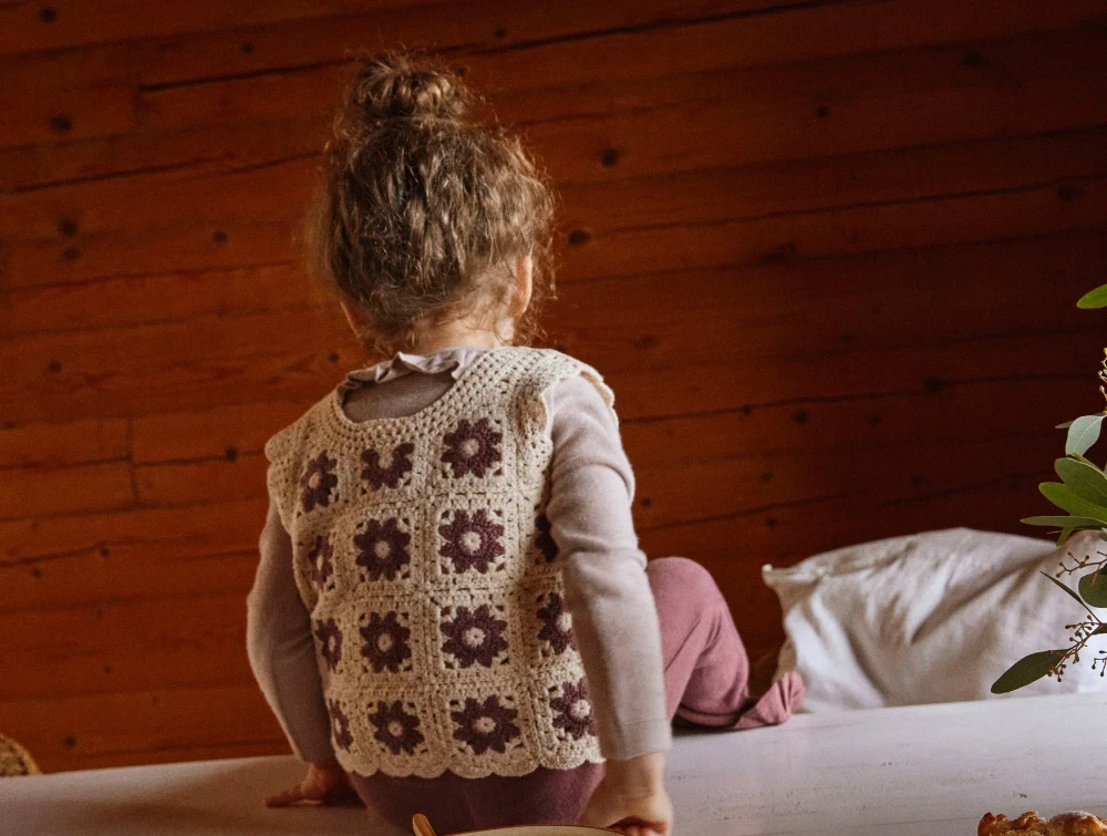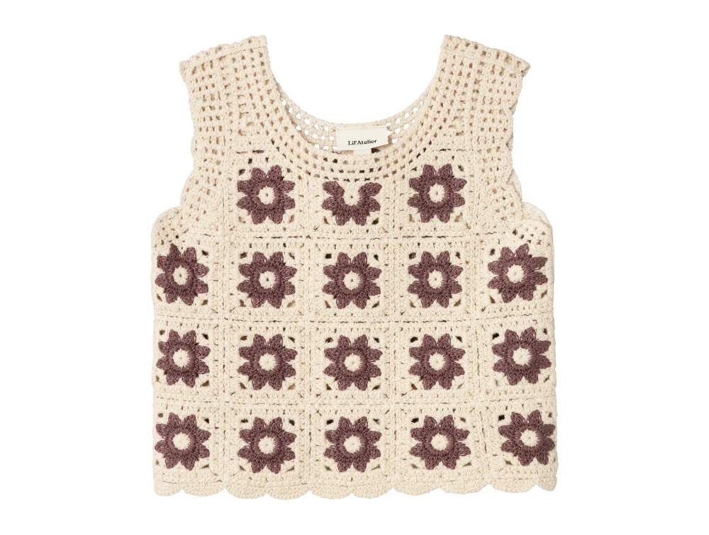 Vest i farven birch med blomstermønster fra Lil' Atelier.