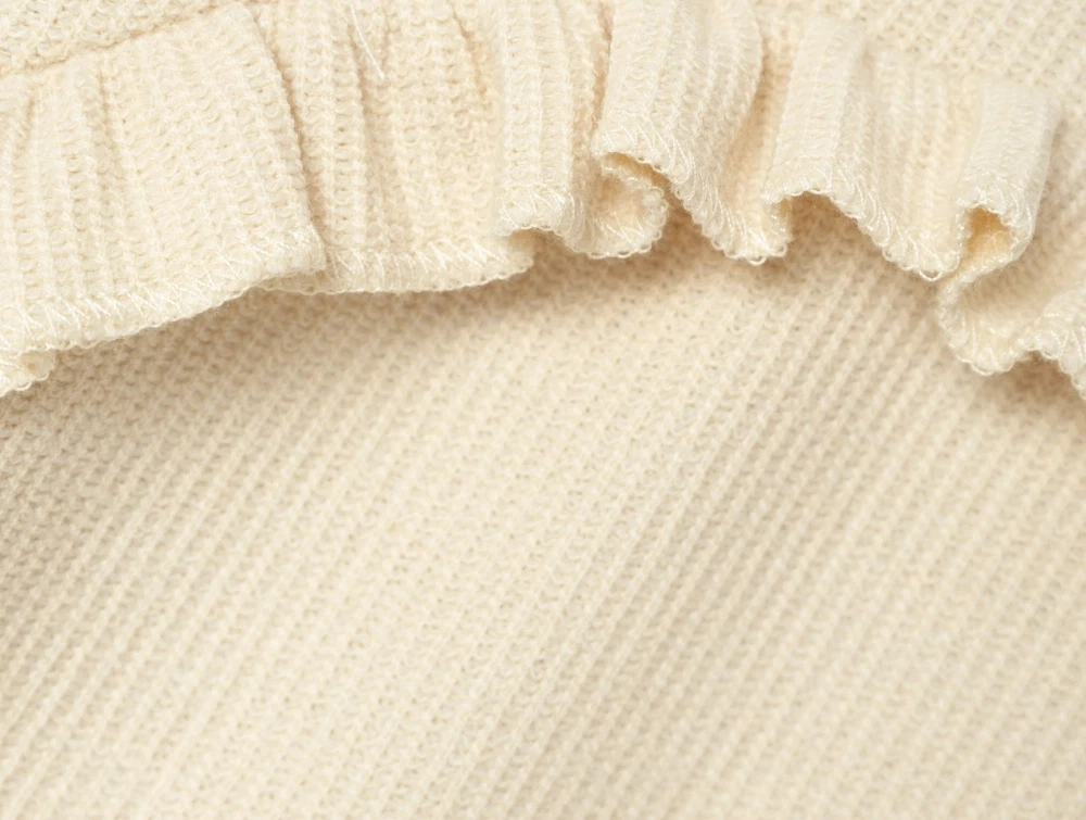 Kjolen har flæser og er i sweatkvalitet med struktur i stoffet.