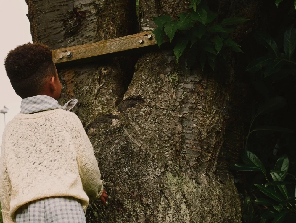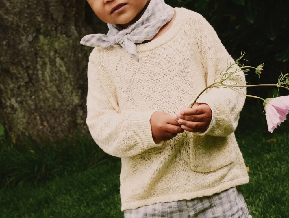 Striktrøje i økologisk bomuldsstrik i farven bleached sand fra Lil' Atelier.