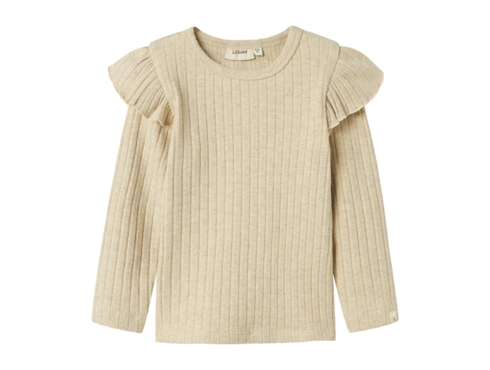 Top i kraftig kvalitet i farven bleached sand med flæser fra Lil' Atelier.