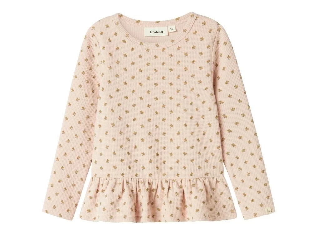 Bluse i farven peach whip med blomsterprint fra Lil' Atelier.
