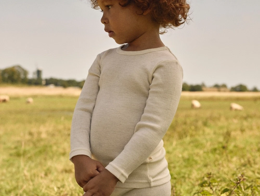 Kombinationen af uld og modal forener de bedste egenskaber fra begge materialer. Uld er naturligt temperaturregulerende og antibakteriel, mens modal bidrager med sin silkebløde fornemmelse og evne til at holde formen. Sammen giver de et let, åndbart og komfortabelt materiale, ideelt til sart hud. Se flere styles i Lil' Atelier merinould.
